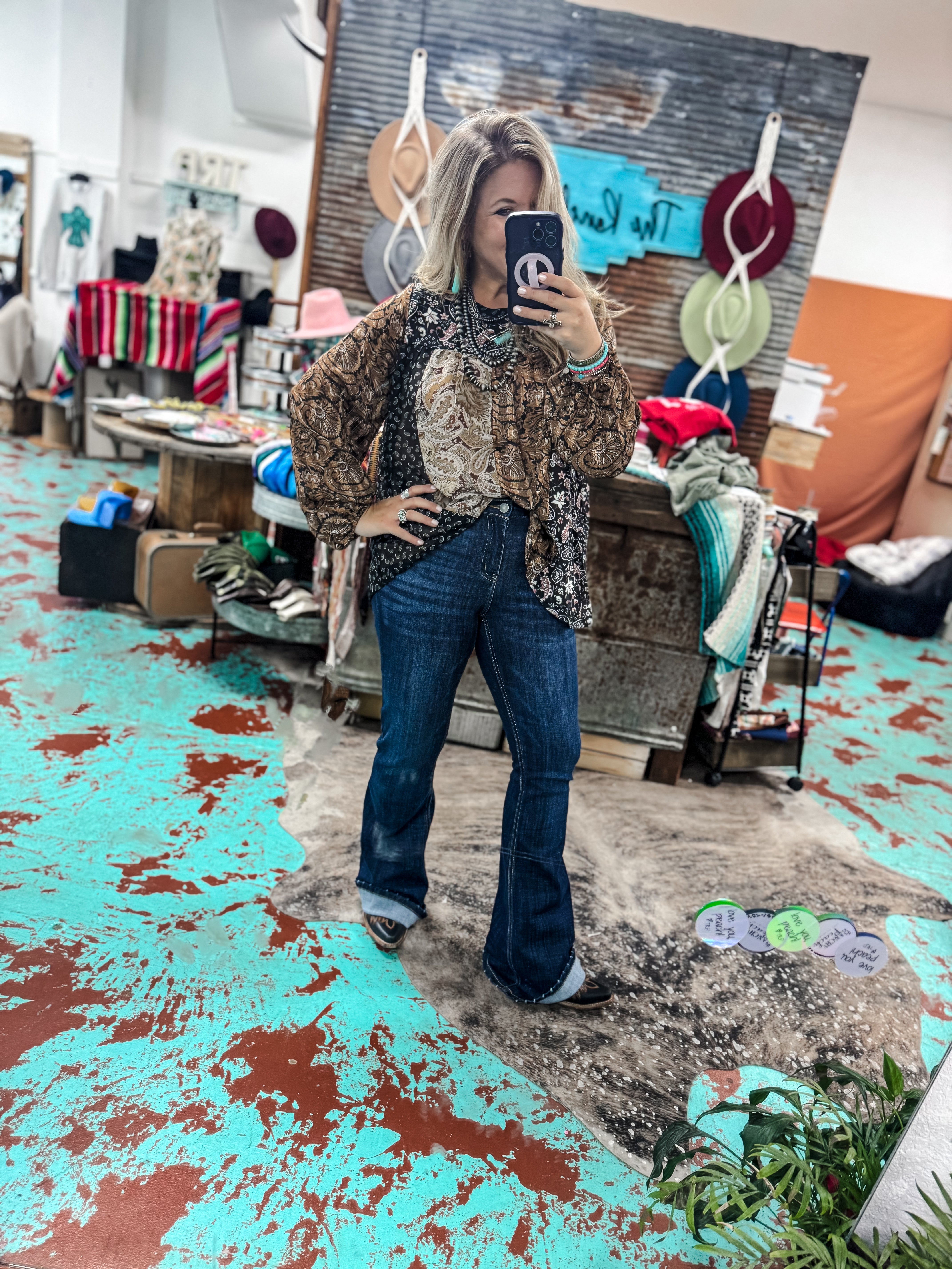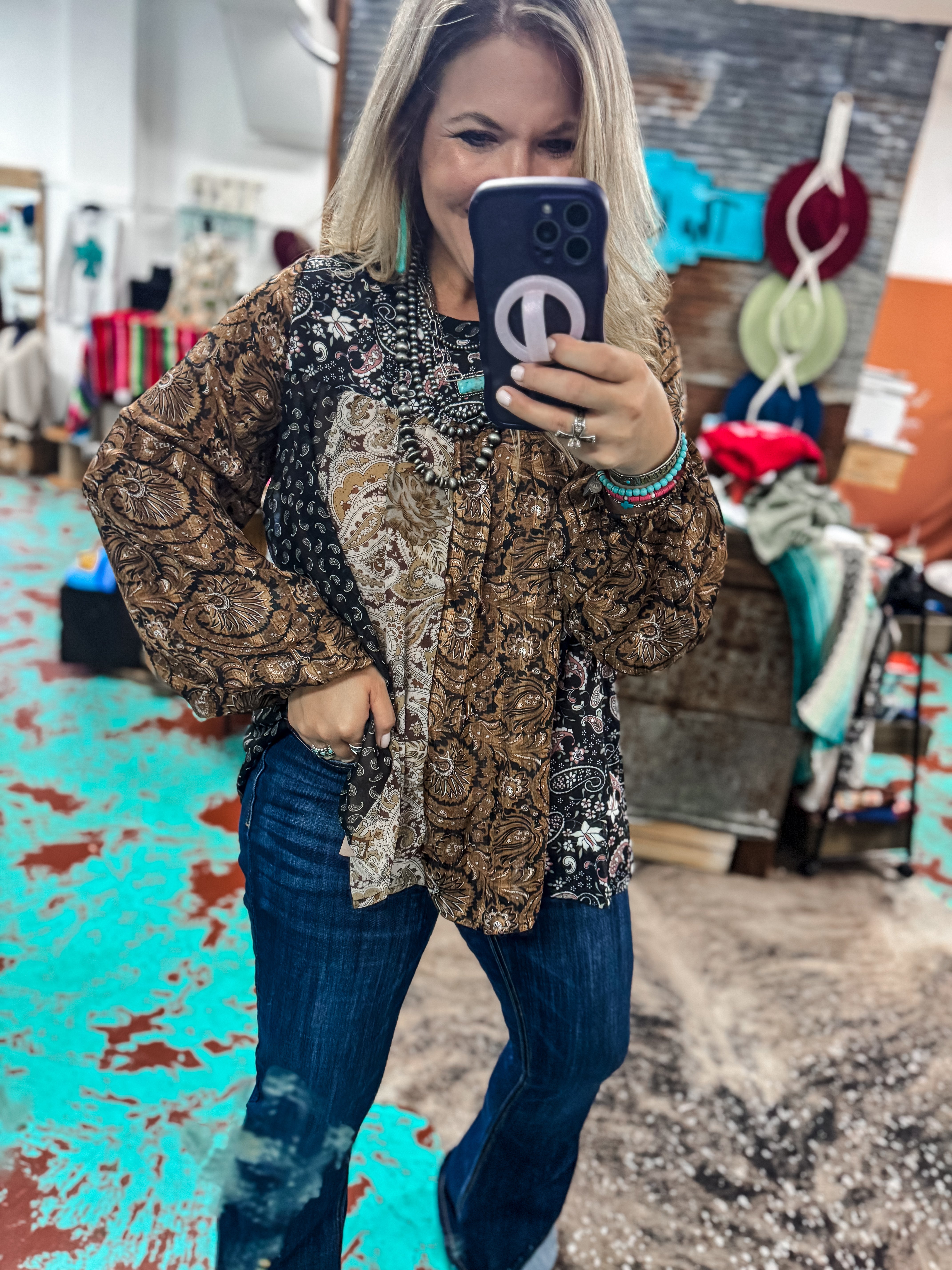 This Brown Paisley Chiffon Top features a stylish black combo that complements its elegant design. Made from lightweight polyester, it offers comfortable wear while providing a cozy layer perfect for fall. Its breathable fabric and classic paisley pattern make it an ideal choice to transition your wardrobe into the cooler season with ease and style.