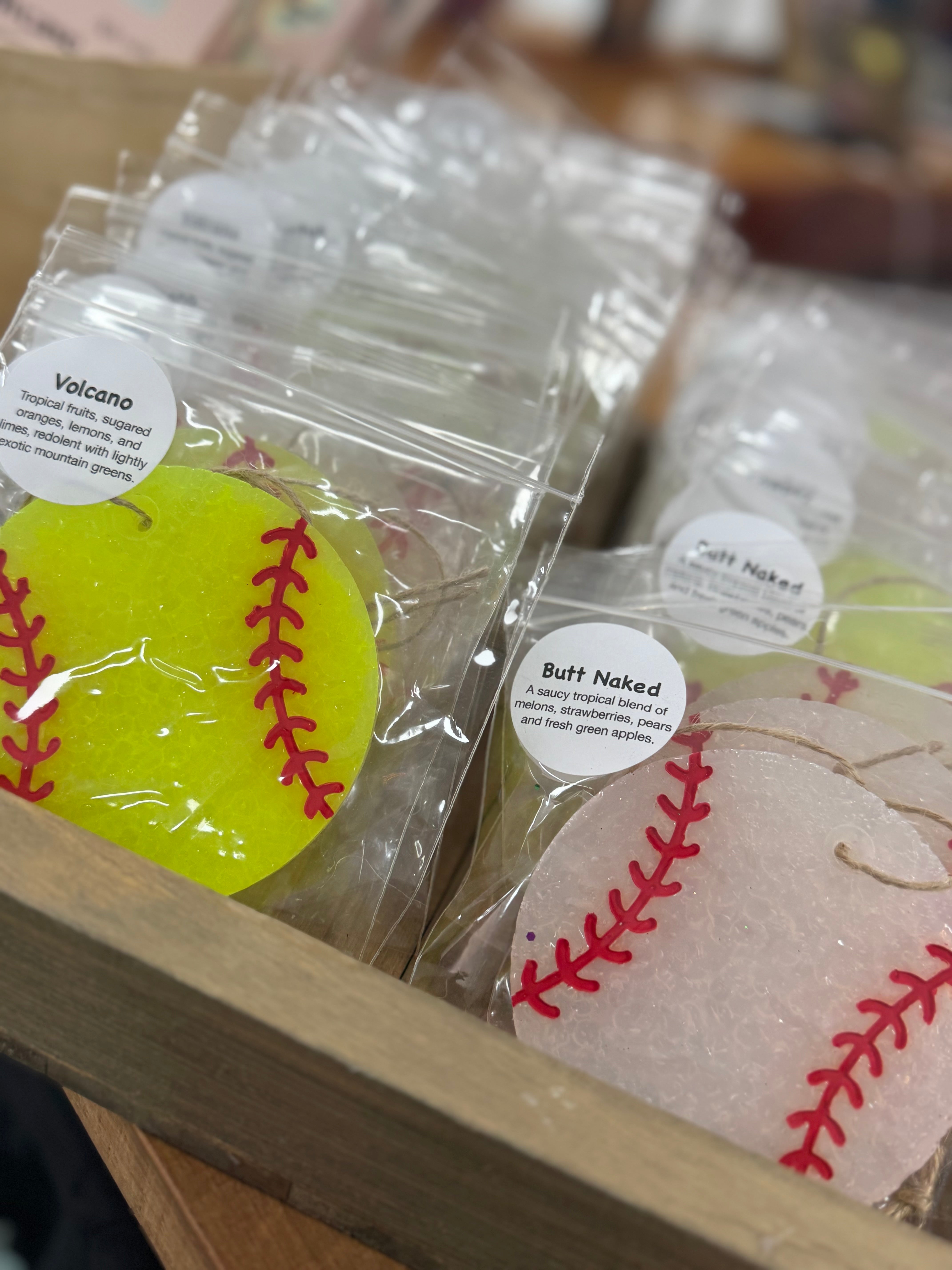 Keep your car smelling fresh with these playful ball-themed air freshies. Perfect for adding a fun pop of personality to your vehicle's interior while eliminating odors. Each freshie delivers long-lasting fragrance that keeps your car smelling clean and inviting. Hang them from your rearview mirror for easy display and continuous freshness. A simple way to upgrade your driving experience with style and scent.