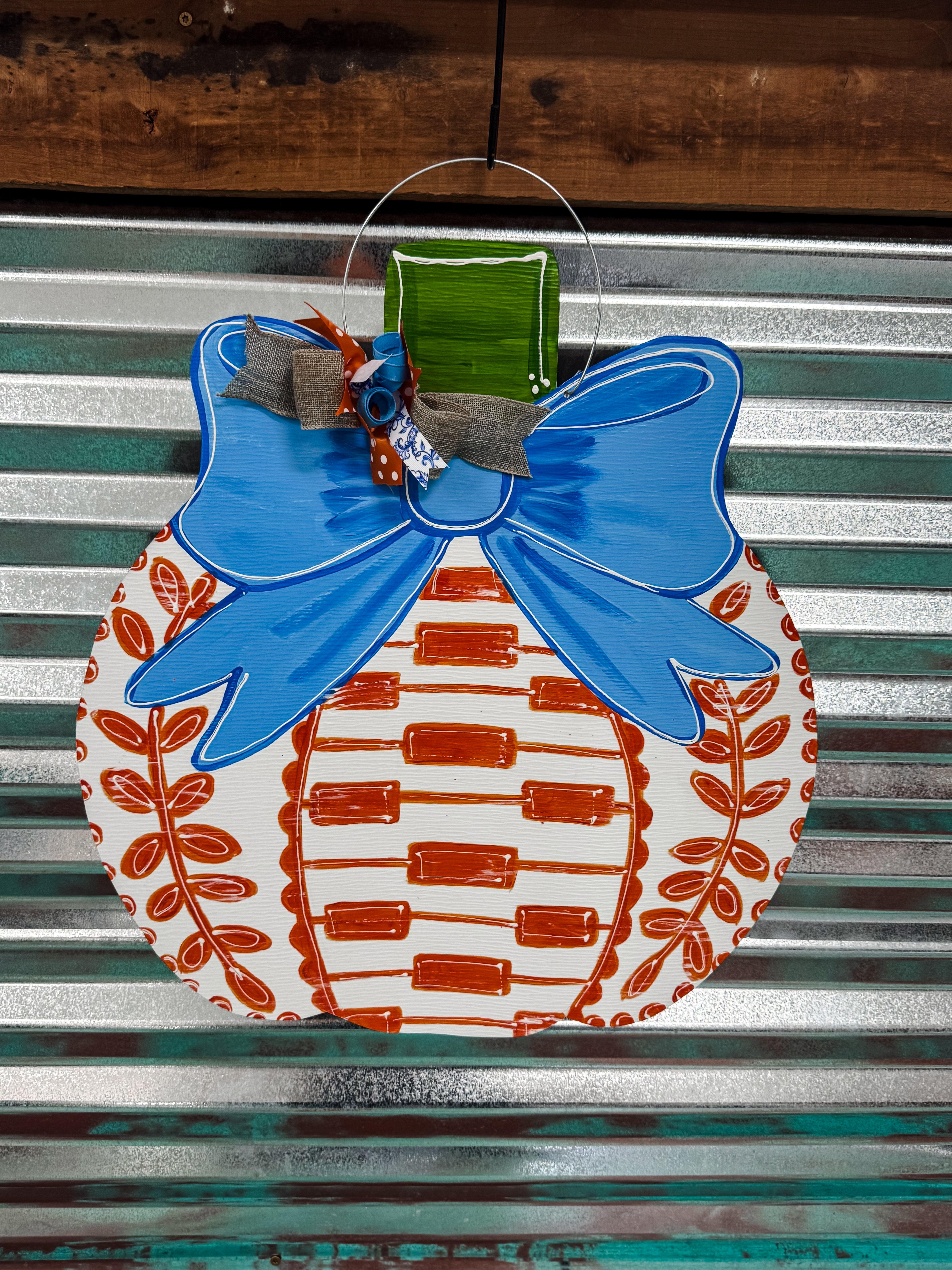 Blue Bow Pumpkin Door Hanger