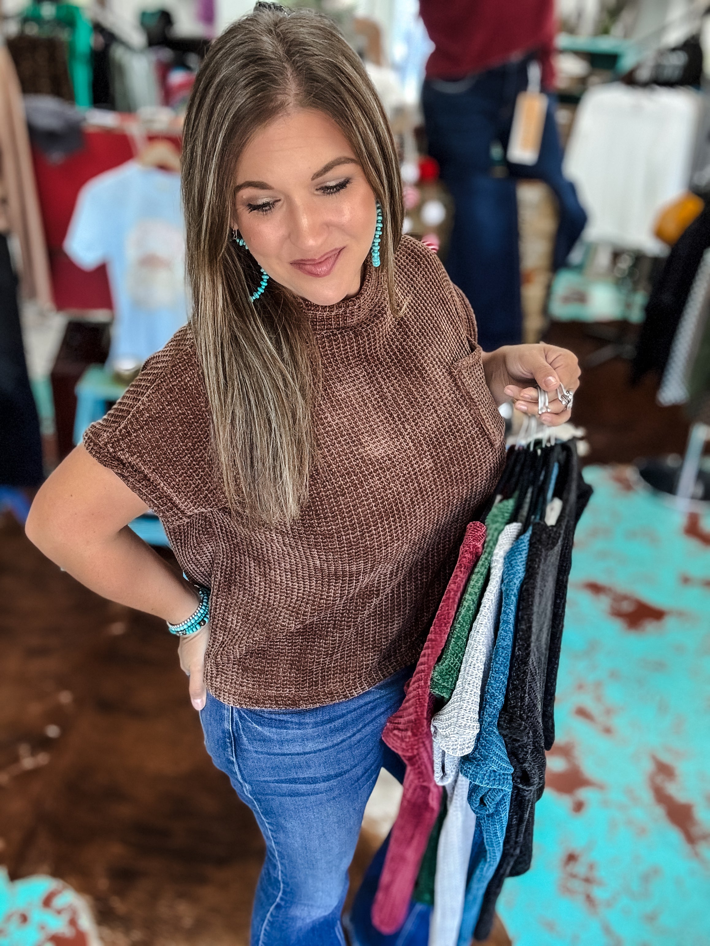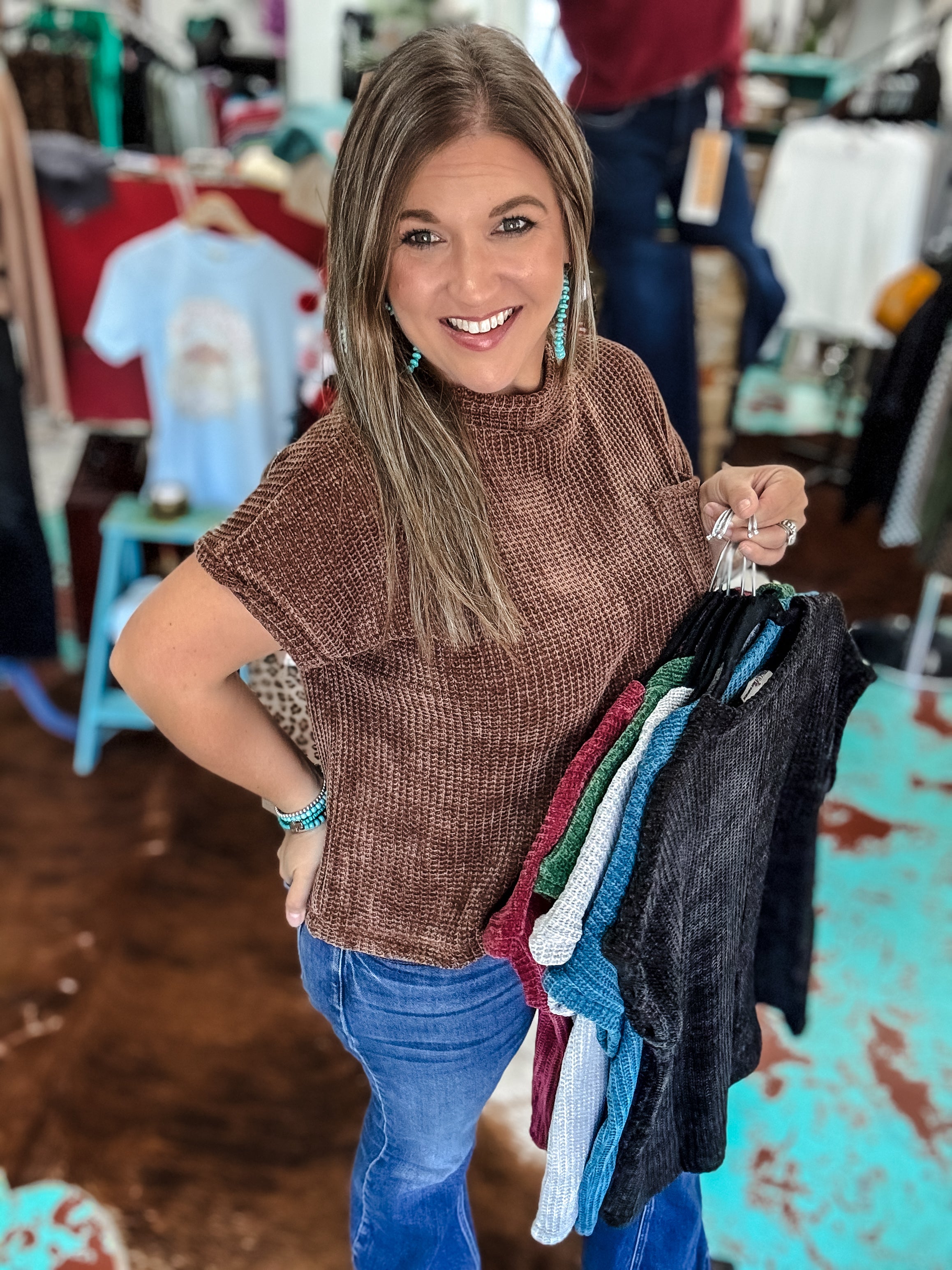 CHENILLE WAFFLE SHORT SLEEVE SWEATER - POCKET TOTAL BODY LENGTH: 23", CHEST: 40" approx. - MEASURED FROM SMALL ** COLOR MAY VARY SLIGHTLY DUE TO MONITOR RESOLUTION