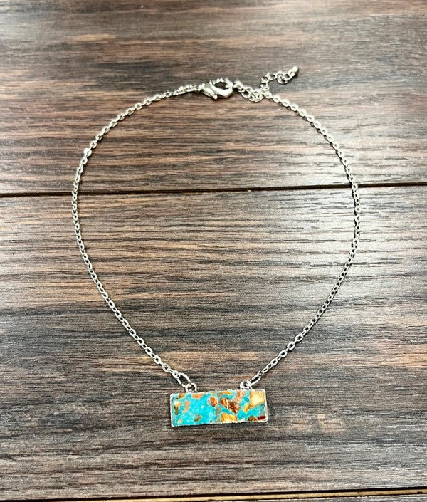 This Gemstone Bar Necklace features a natural stone set in a delicate bar bezel setting, designed to layer beautifully with your favorite gemstone choker. Adjustable from 15" to 18" long, it offers a versatile fit that complements any outfit with understated elegance. Perfect for adding a subtle touch of natural beauty while enhancing your layered jewelry look.