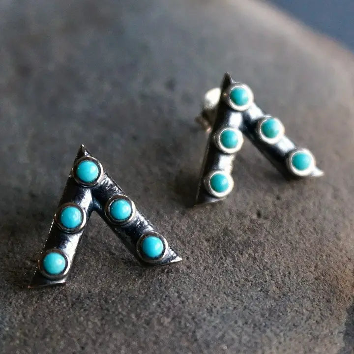 Bold yet elegant, these silver stud earrings from our signature Jacy Collection are designed for those who embrace adventure and style. It is adorned with three round turquoise stones on each side, adding a vibrant pop of color against the sleek silver finish. Symbolizing direction and strength, these studs are perfect for everyday wear or as a statement piece. A modern blend of sophistication and Southwestern charm, they’re a must-have addition to your jewelry collection. Size: 7.5 x 7.5 mm. Material: 925 sterling silver, genuine turquoise. Design & made by Sowell Jewelry™