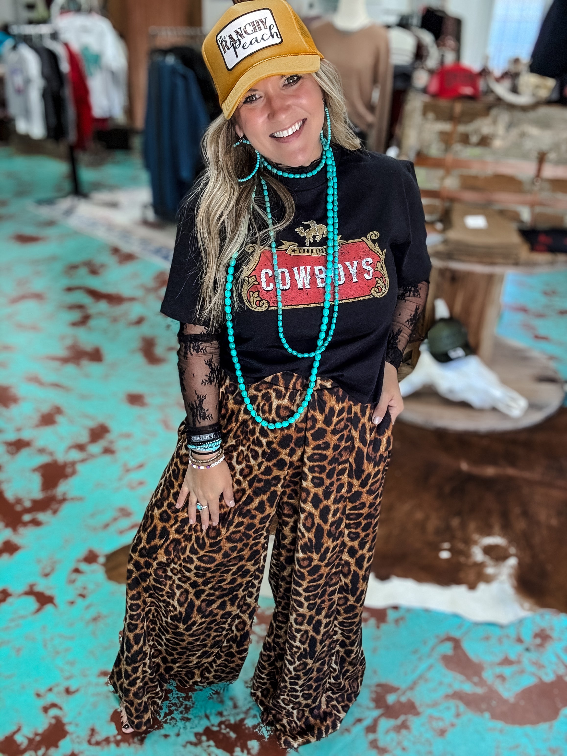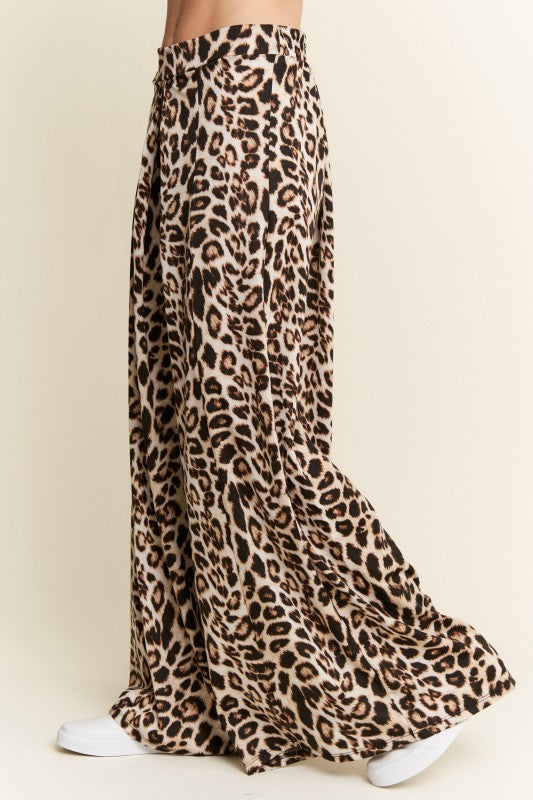 These Leo Print Pleated Pants combine style with comfort, featuring elegant front pleats that add a polished touch. An elastic waistband ensures a flexible, comfortable fit throughout the day, while practical pockets provide convenient storage. Perfect for casual or dressier occasions, these pants support your ease and confidence wherever you go.