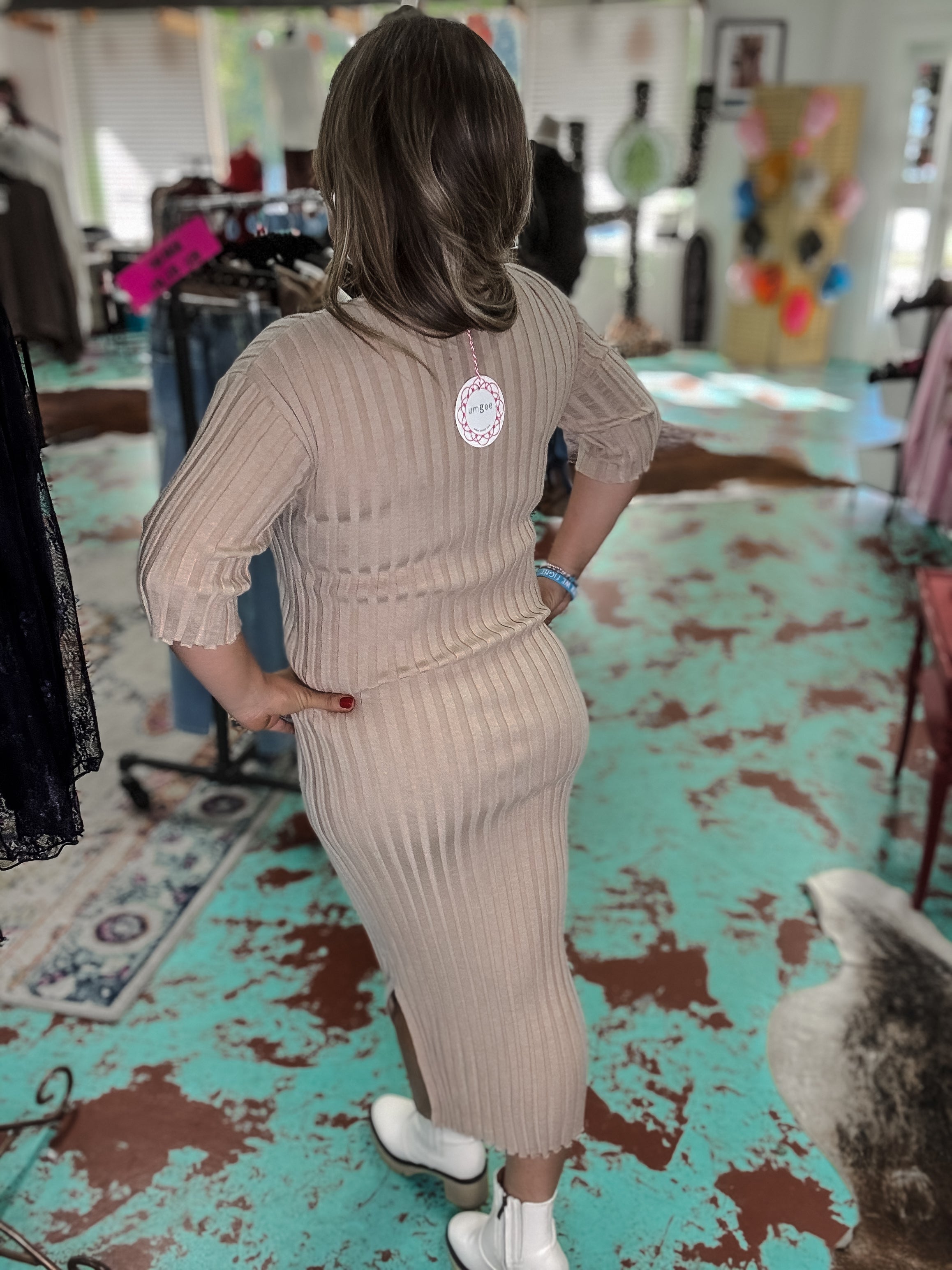 Elevate your everyday wardrobe with this sophisticated Ribbed Knit Midi Sweater Dress. Crafted from a premium blend of acrylic, polyester, nylon, and viscose, this piece delivers exceptional comfort and durability. The flattering V-neckline creates a refined silhouette, while the ribbed knit texture adds visual interest and dimension. Unlined for a lightweight, breathable feel that transitions seamlessly from office to weekend. Perfect for layering or wearing solo, this versatile midi dress is the investment piece you've been searching for.