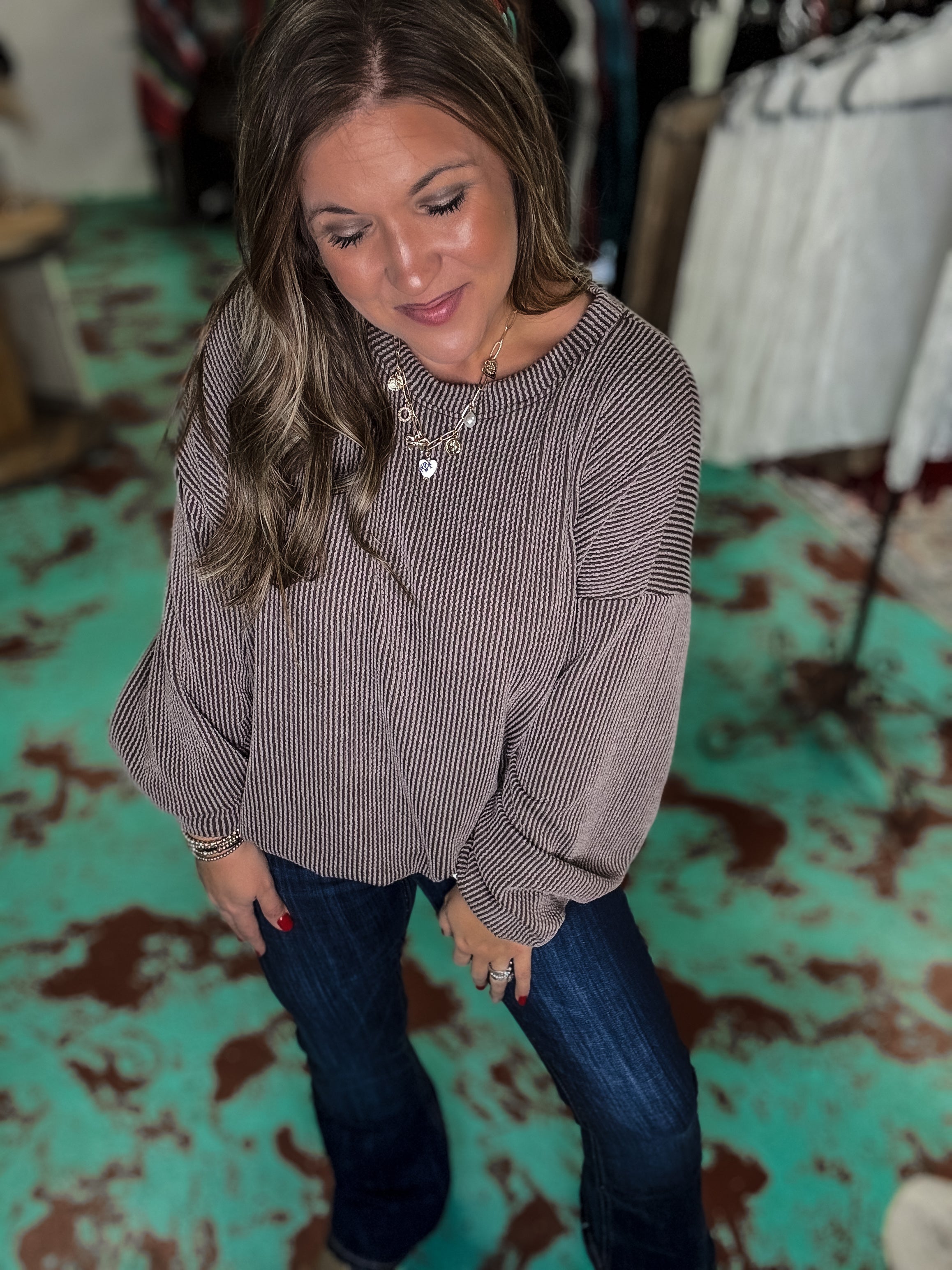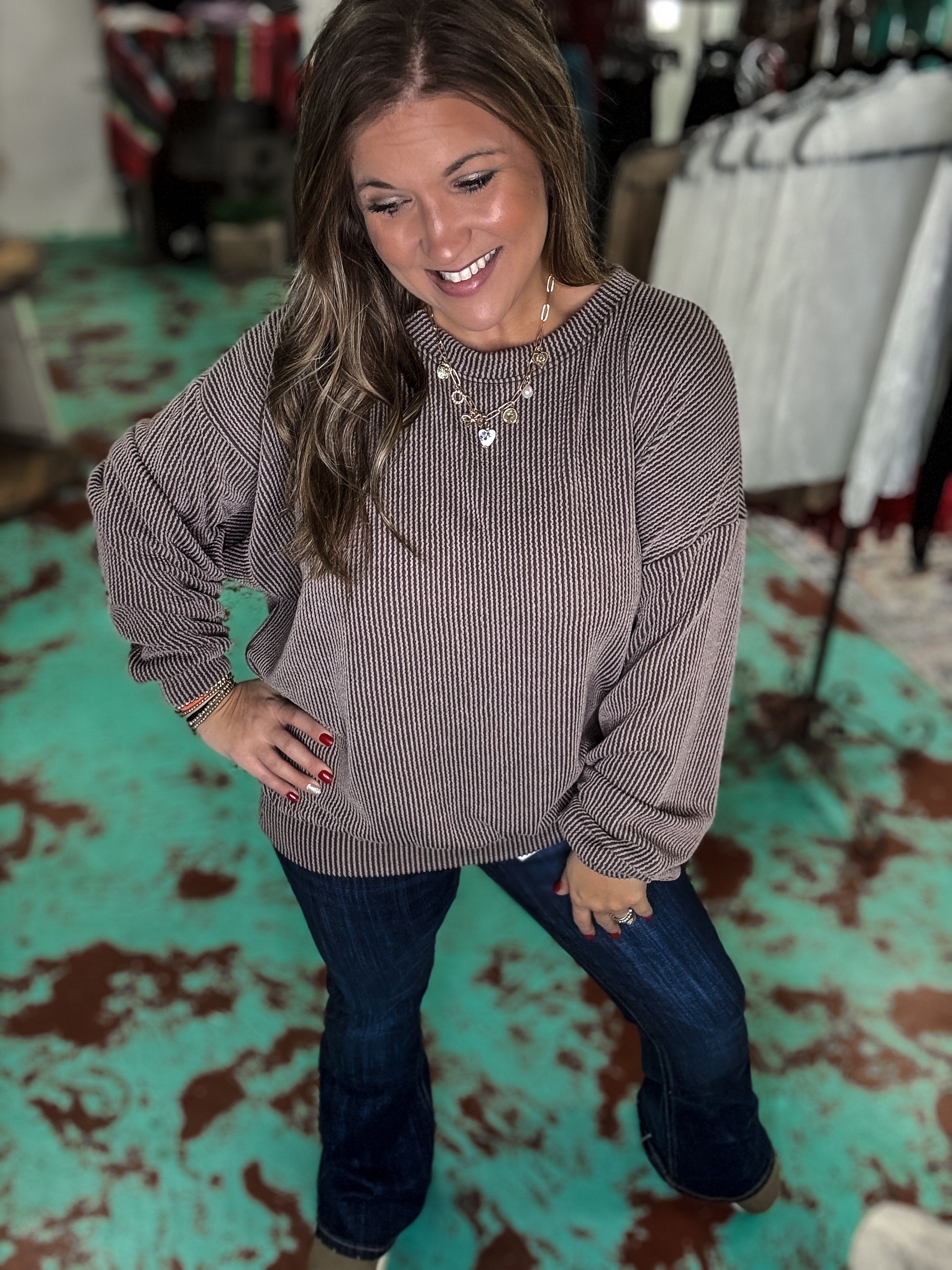 Wrap yourself in effortless comfort with our Striped Knit Sweatshirt. Crafted from a premium blend of 95% polyester and 5% spandex, this textured knit piece delivers the perfect balance of softness and stretch. The subtle striped pattern adds visual interest while the cozy fabric keeps you feeling relaxed all day long. Whether you're lounging at home or stepping out for casual errands, this sweatshirt becomes your go-to layer for laid-back style that doesn't compromise on comfort.