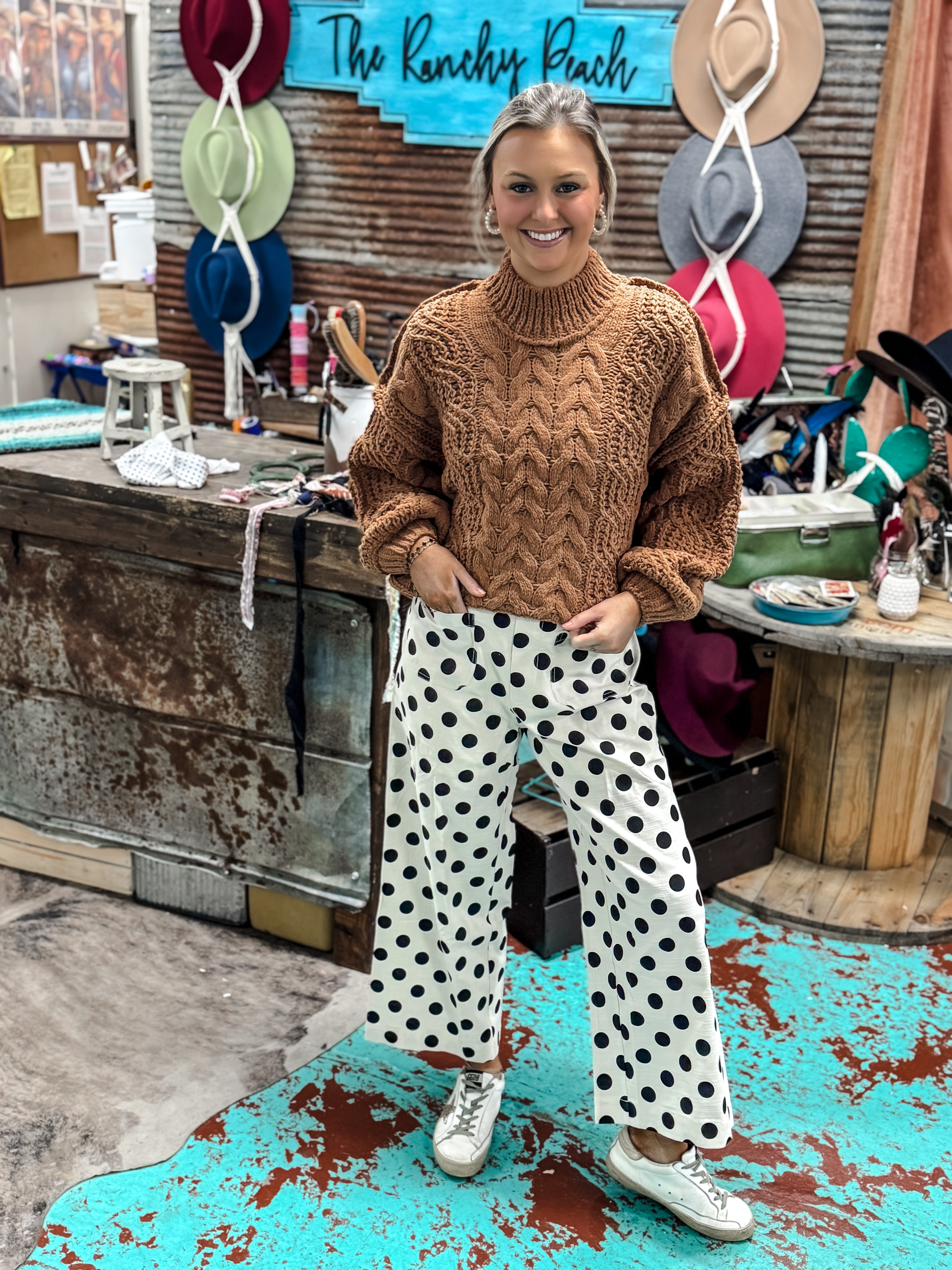 These polka dot wide pants are your new go-to for effortless style! The hidden zipper closure keeps things sleek and streamlined, while the back stretch band ensures all-day comfort whether you're lounging or out on the town. Practical side and back pockets mean you've got room for your essentials. Perfect for mixing playful prints with your favorite tops.